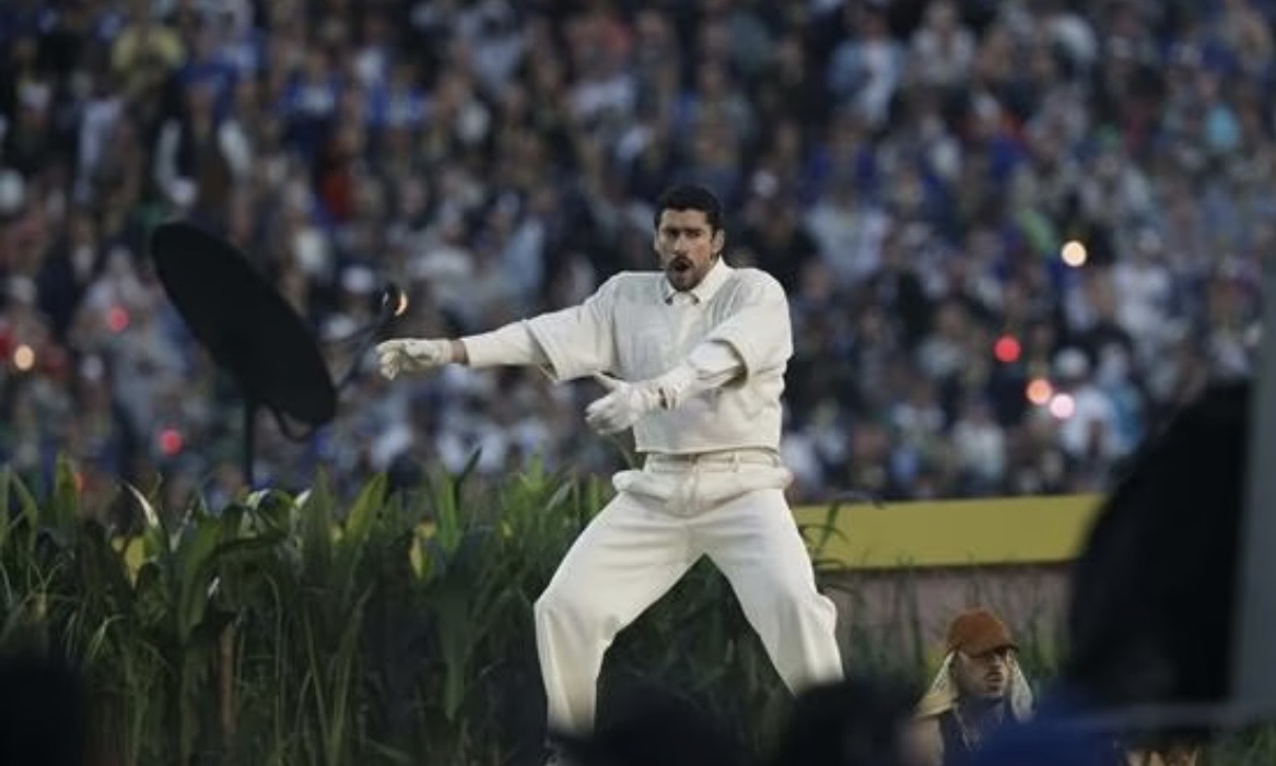 Lejos de entregar un espectáculo centrado en efectos y superficialidad, Bad Bunny construyó una narrativa visual y sonora que exaltó símbolos y valores de su tierra. Desde la apertura con “Tití Me Preguntó” hasta secuencias que evocaron el Caribe —palmeras, réplicas de “La Casita” y la presencia de banderas latinoamericanas—, cada elemento fue una declaración de identidad profunda.